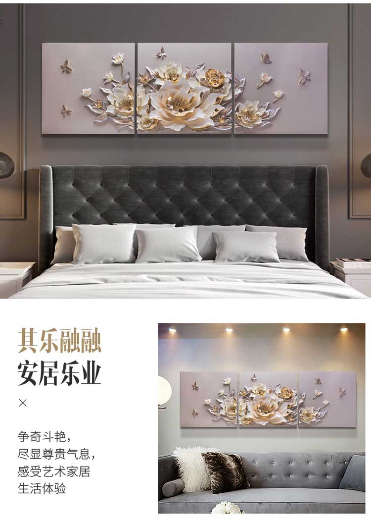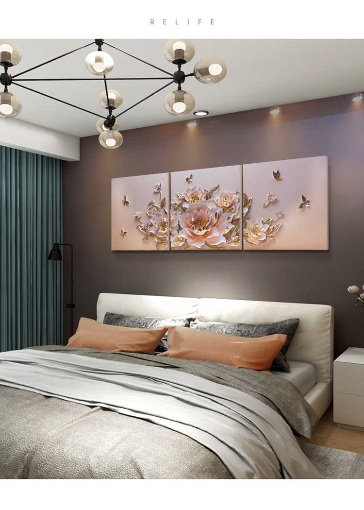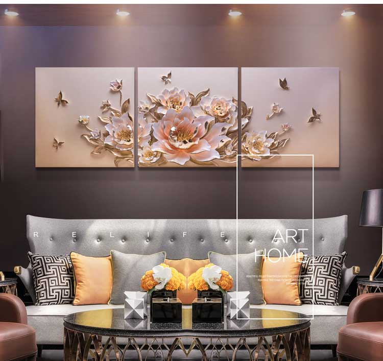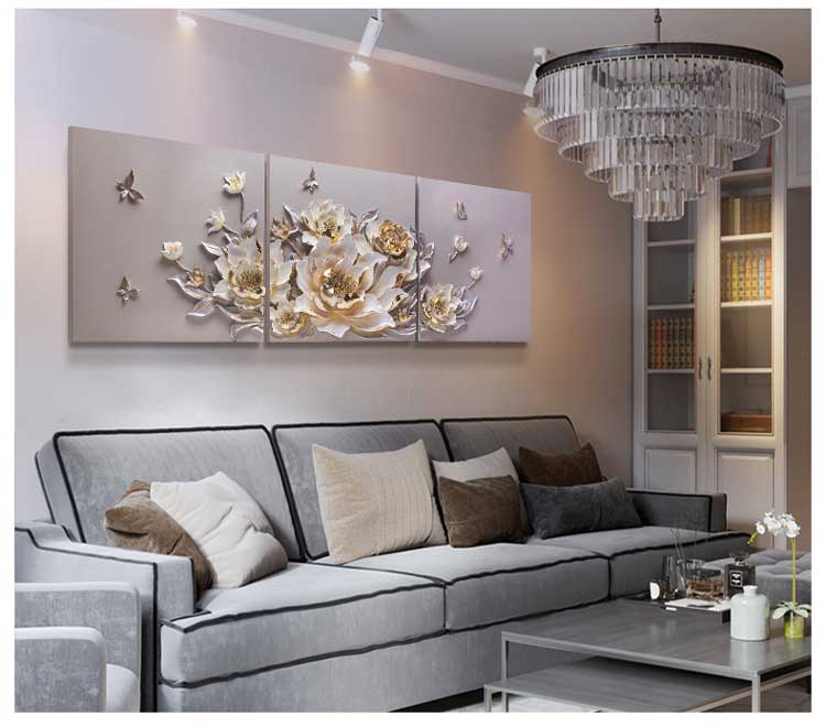 Bộ 3 tranh trang trí 3D Hoa TTA 008