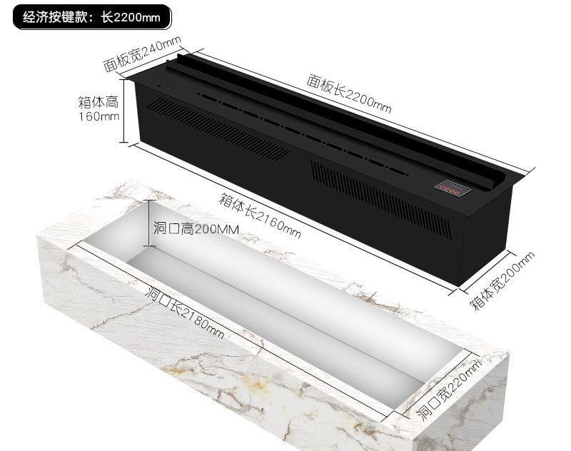 - Sơ đồ lắp đặt :(Lấy một mét làm ví dụ. Khi lắp đặt mặt bàn và đồ trang trí nội thất của lò sưởi, nó phải là vật liệu chống ẩm. (Không thể sử dụng vật liệu thời trang để trang trí)